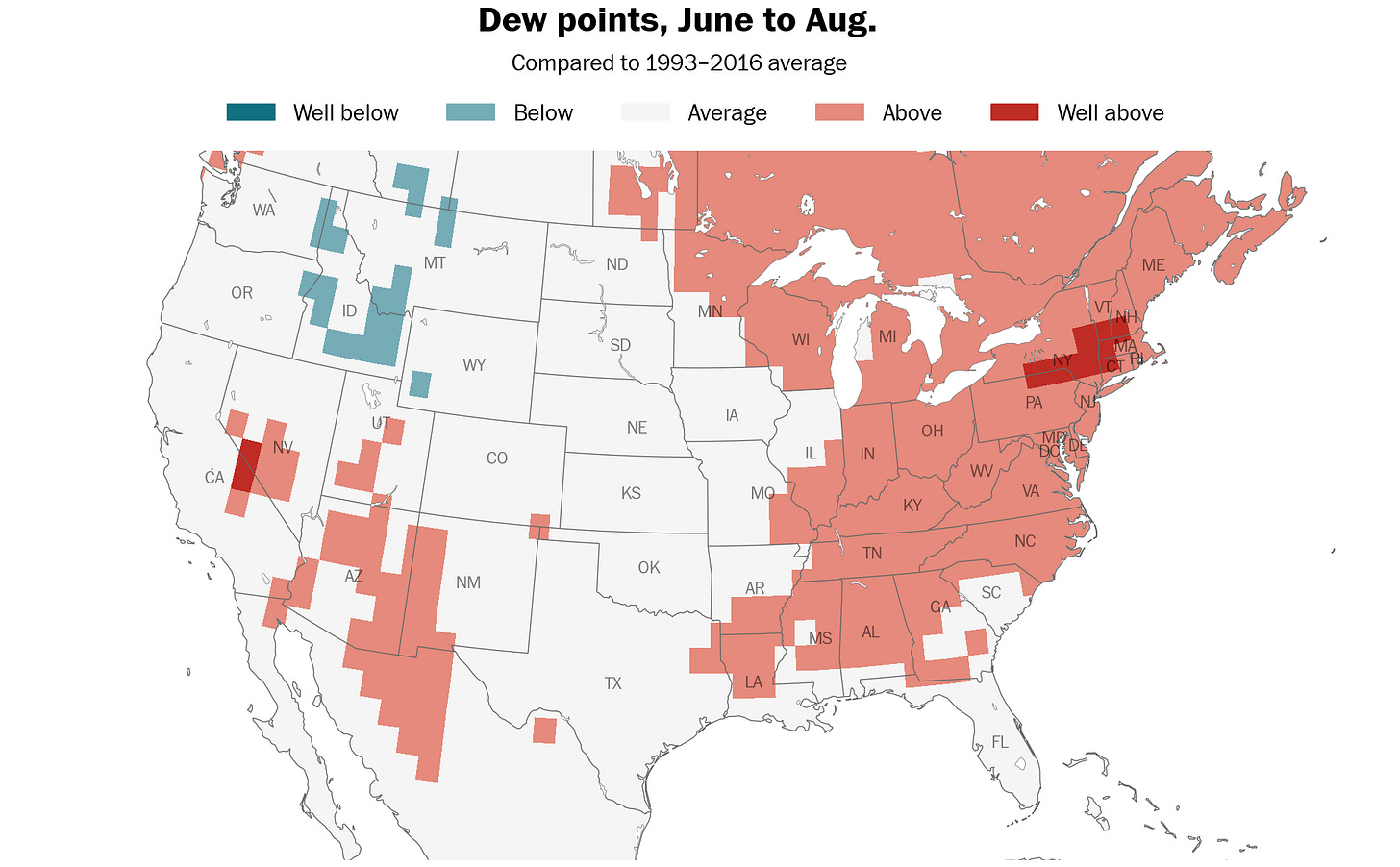 June through October all show signs of being muggier than normal due to unusual ocean heat in the western Atlantic.