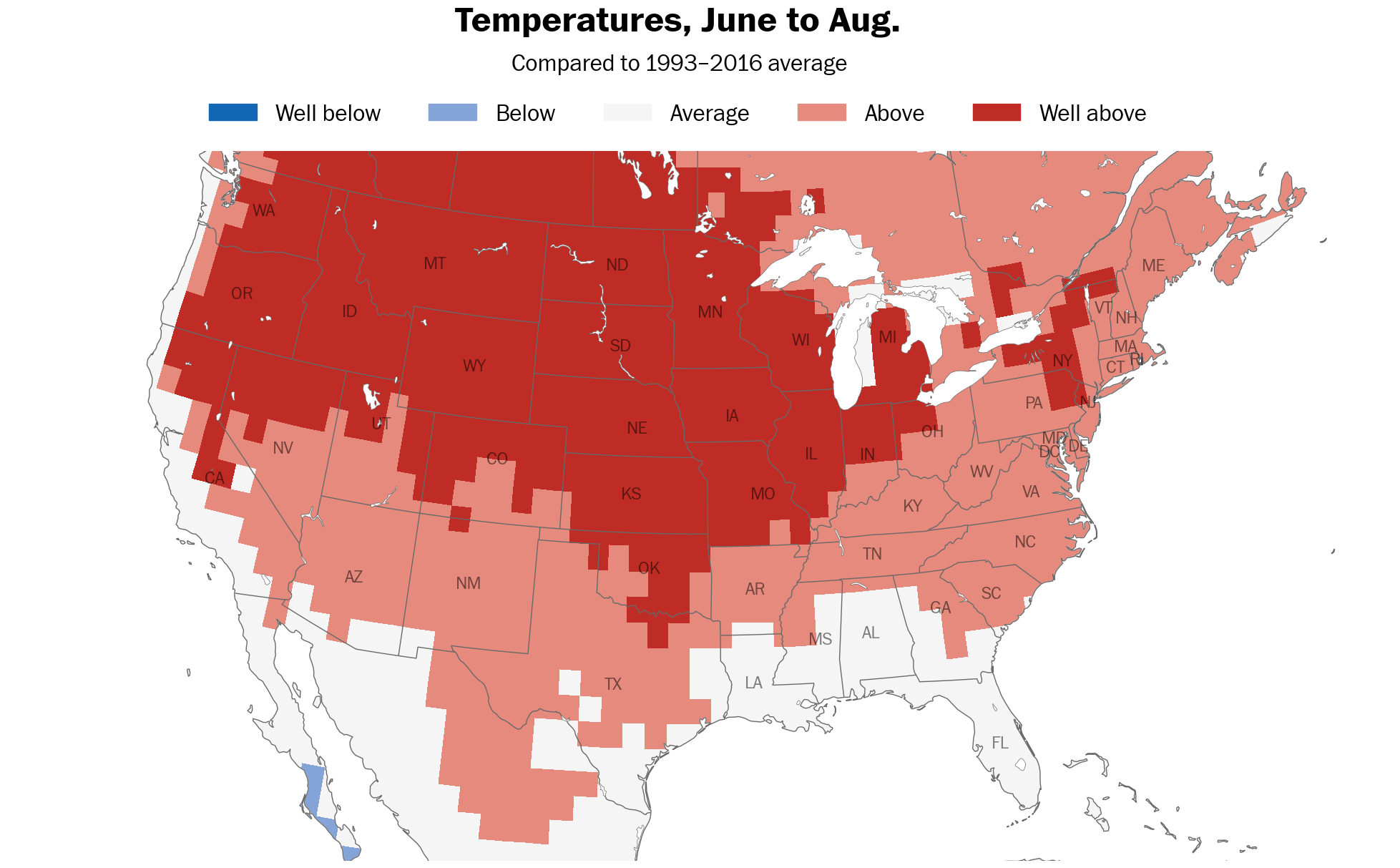 The summer season is unlikely to be cooler than average across most of the country according to the models, especially in western and central states.