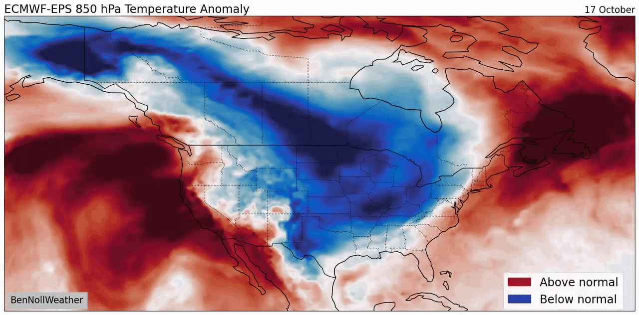Cold air across the nation’s midsection could shift eastward by Halloween.