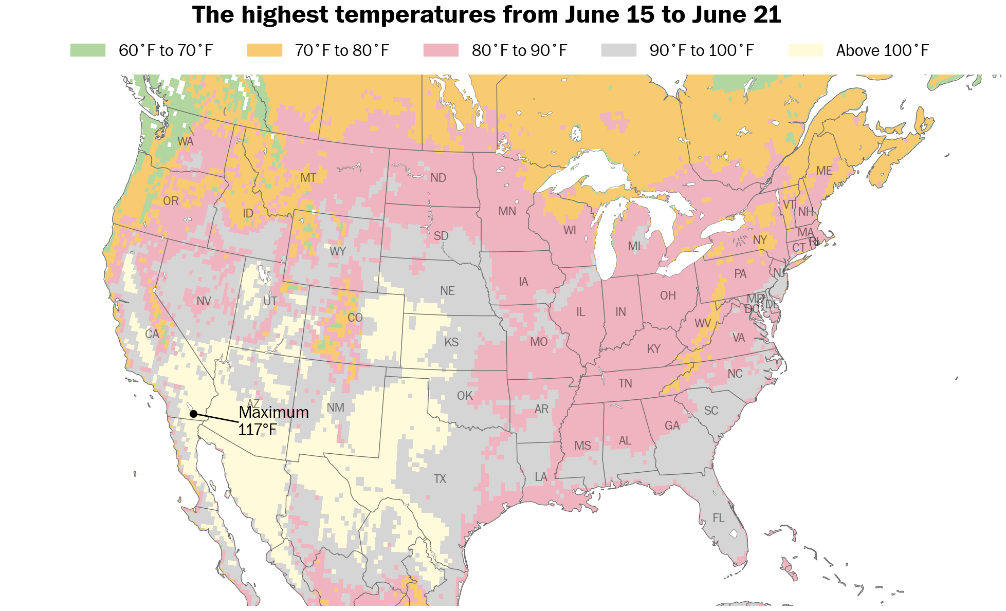 Looking ahead to the week of June 23, conditions may be very hot and humid, especially early in the week.