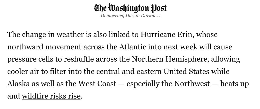 You can partially thank Hurricane Erin — not just for staying offshore, but for reshuffling pressure patterns in the Northern Hemisphere and allowing cool air to filter southward from polar regions.