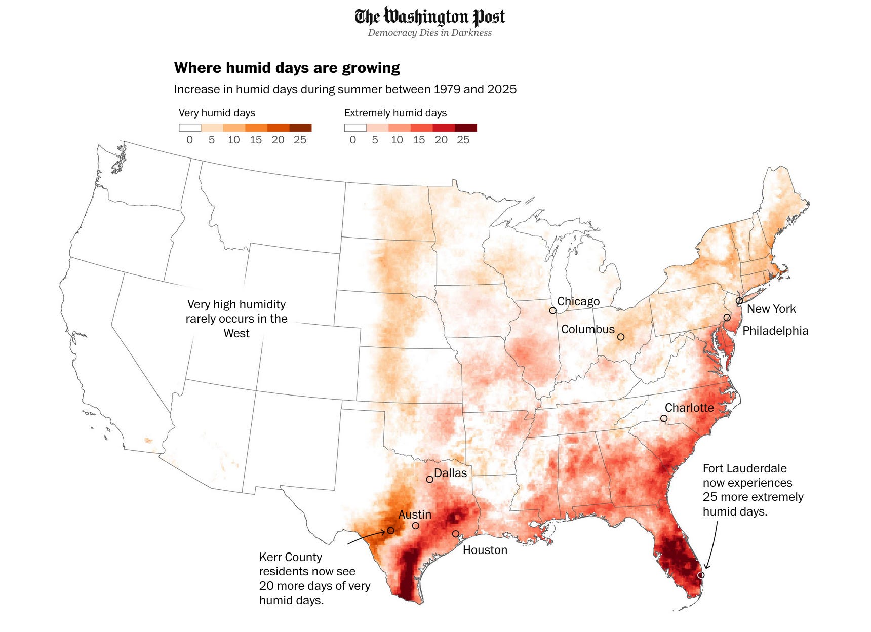 In this week’s Washington Post, I wrote about this summer’s humidity and long-term trends across the United States. Here’s a gift link if you’re up for some additional reading!