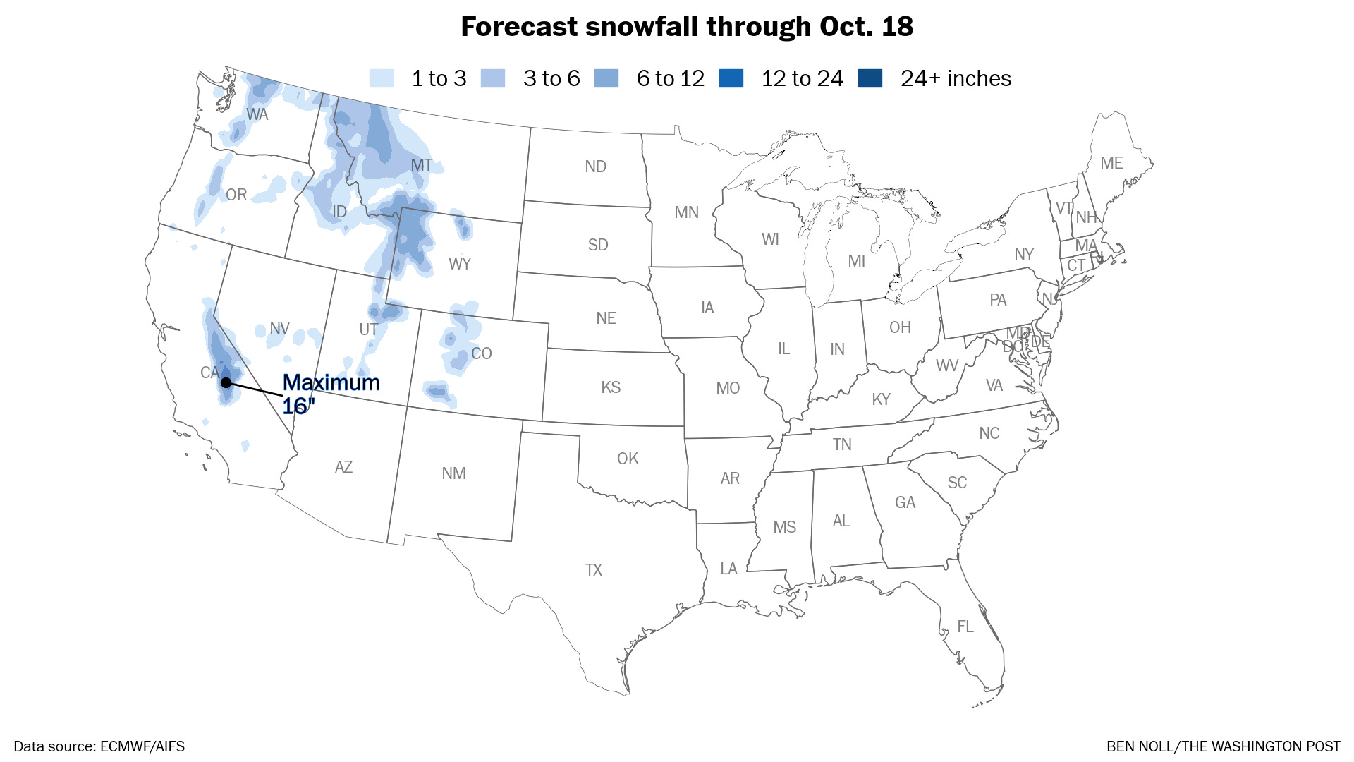 Winter will arrive early in the West, as snow coats the mountains during the week ahead.