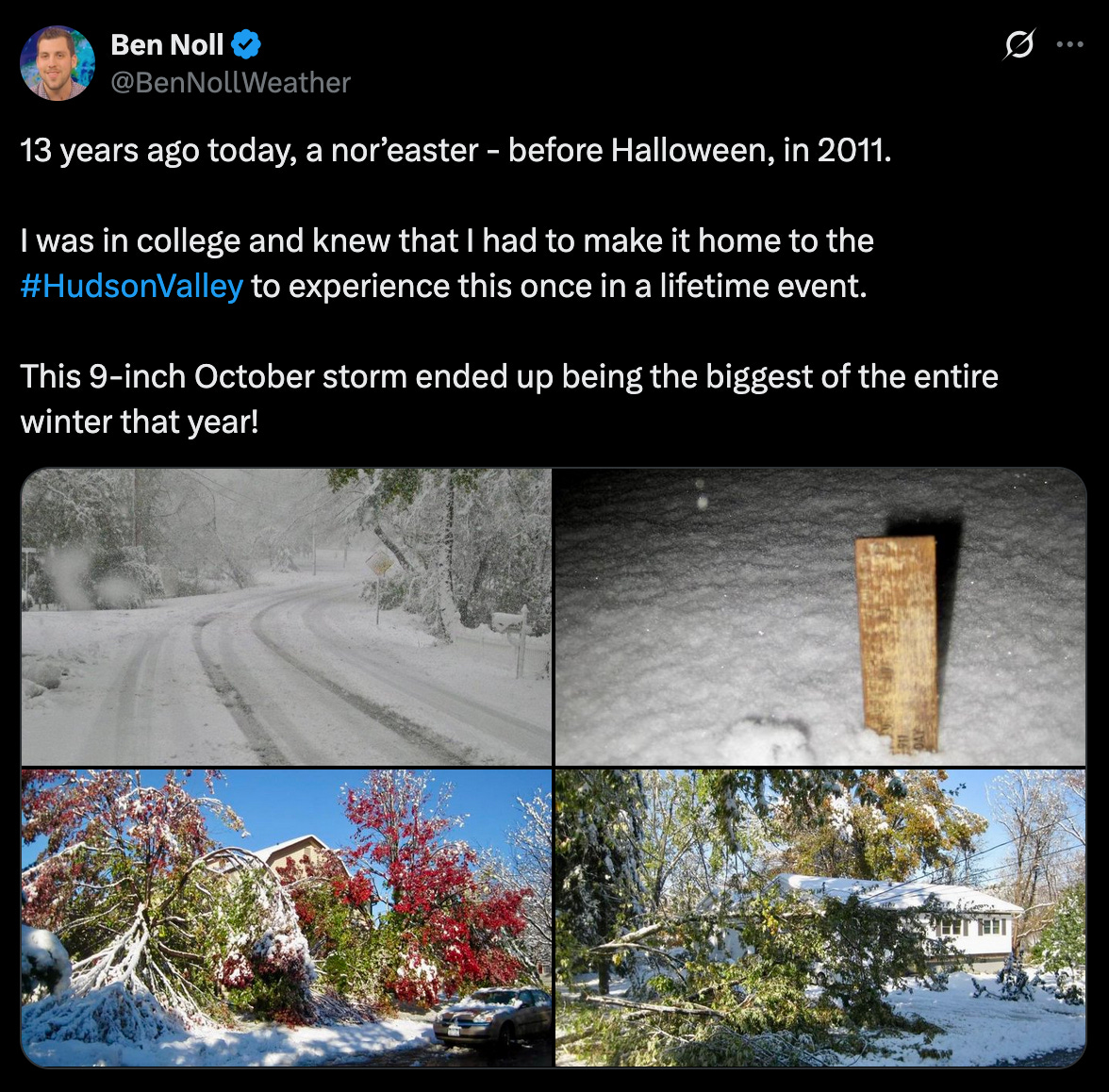 Fewer than 20 days ago it was in the 80s in the Hudson Valley. This week, it may not reach 60! And a pre-Halloween storm is headed for the region. But don’t worry, it won’t be like this Halloween storm back in 2011: