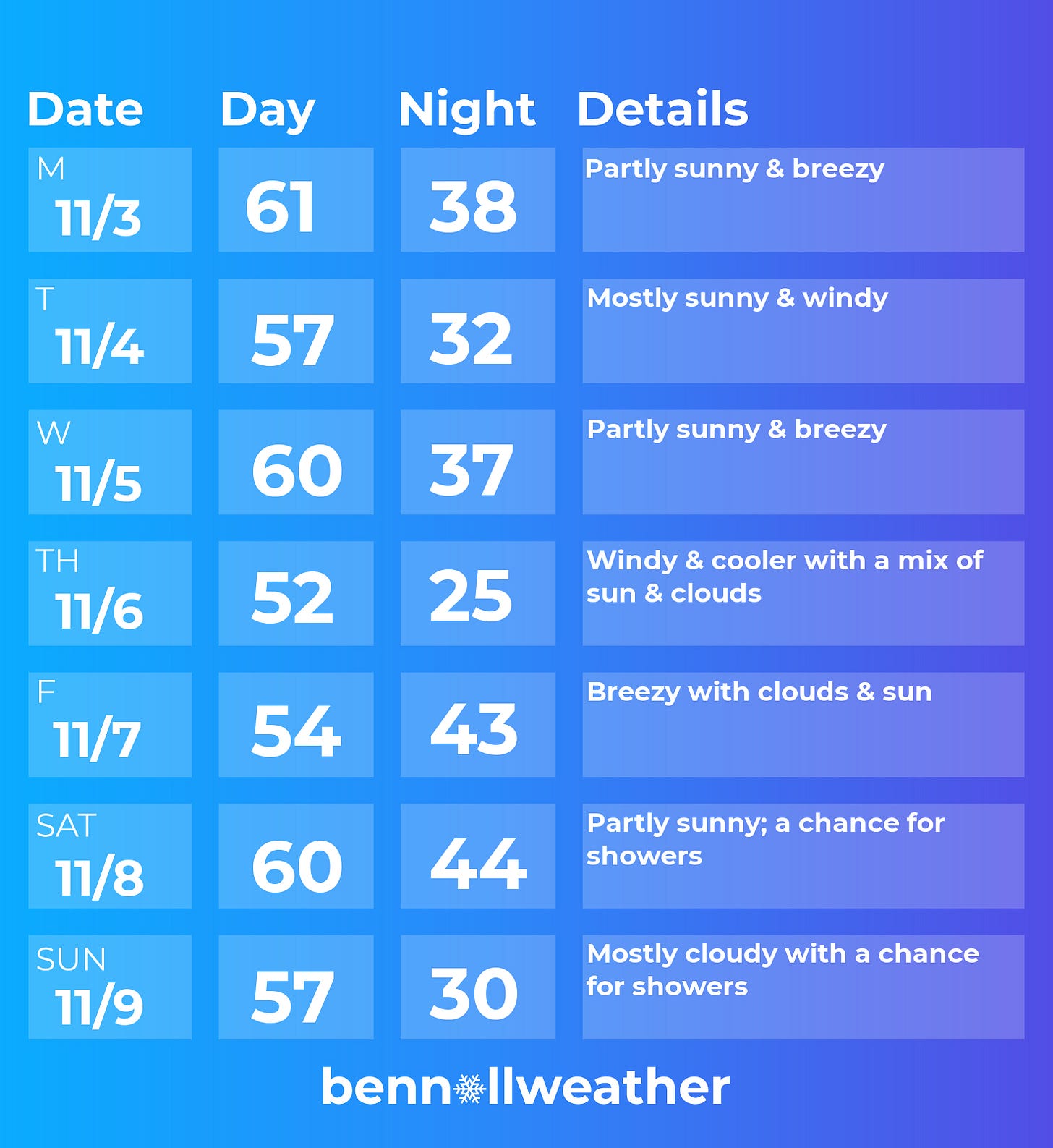 Each day will bring a slightly different flavor of weather, as windy conditions prevent patterns from getting stuck in place.