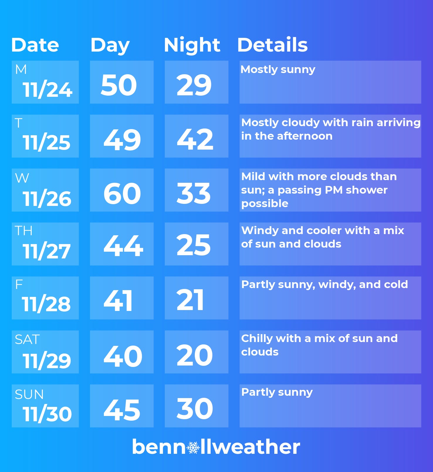Thursday: a pretty tranquil turkey day, aside from the wind! 🌬️