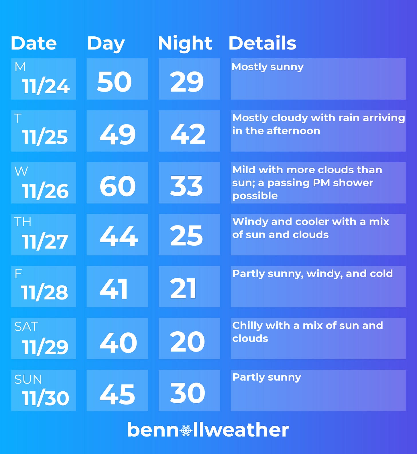 The weather in the Hudson Valley this week will be mostly dry, hopefully opposite of your Thanksgiving turkey, with sides of wind, sunshine, cold air, and warmth, even if the latter is fleeting.