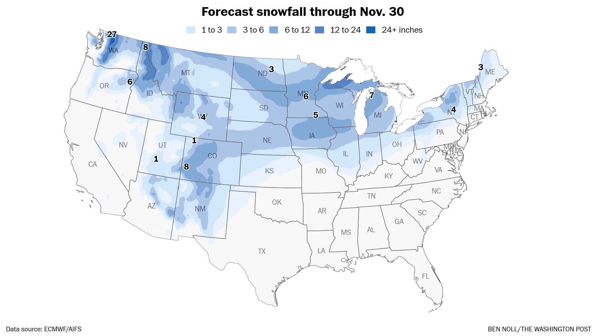 There are still signs of a pattern shift in December, with stormier conditions and pulses of cold air arriving in the East. You can read more about that in my recent Washington Post article [gift link].