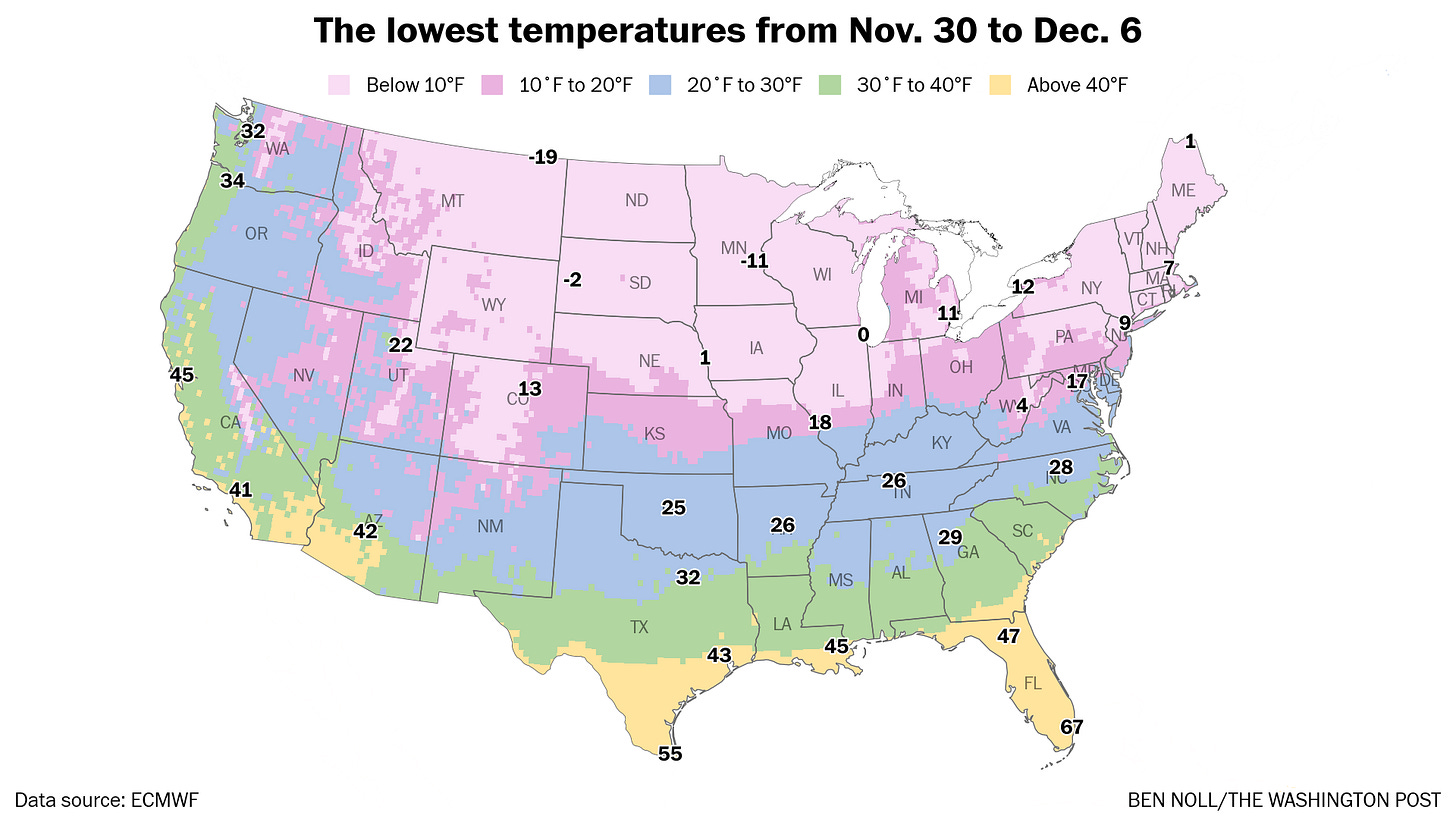 Looking ahead to the week of December 8, it could be quite cold with more storm chances.