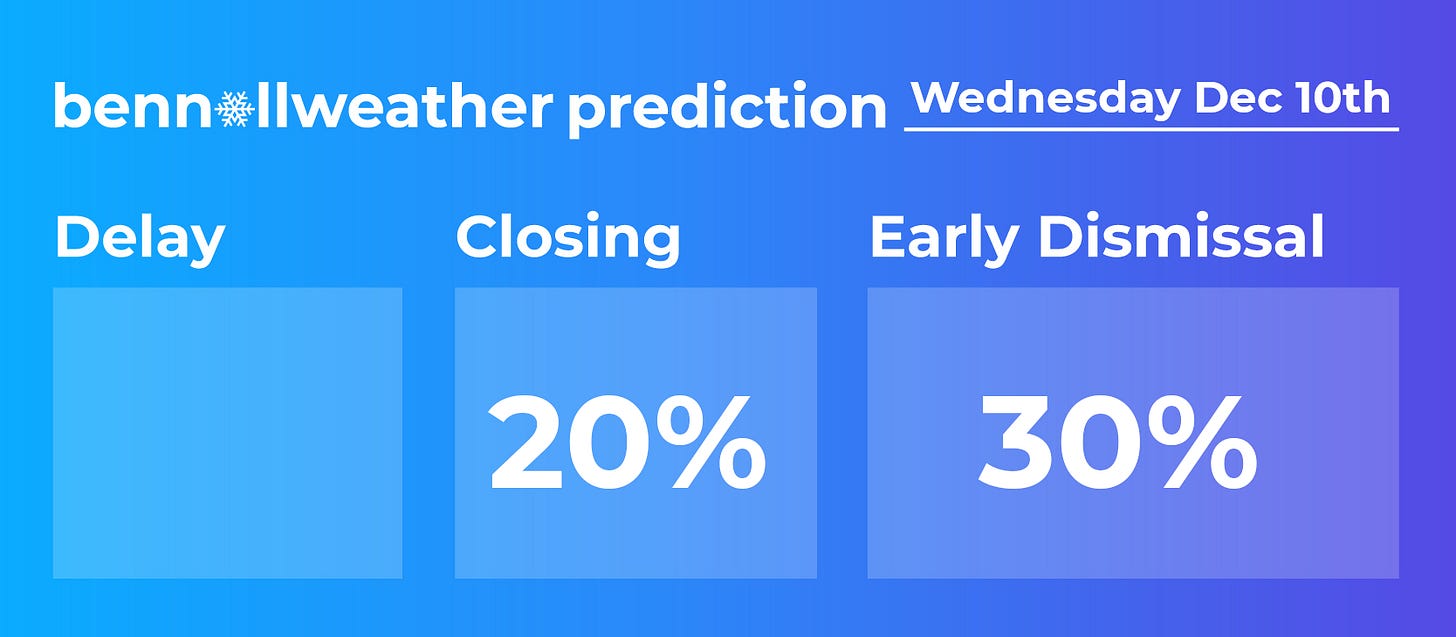 There is a chance, albeit minor, for early dismissals and school closings, the latter mainly in the Catskills.