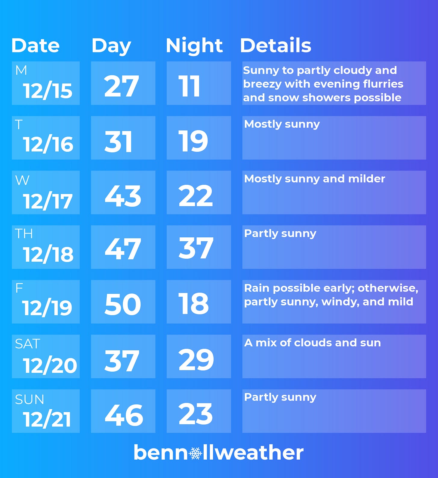 Friday: windy and mild with rain possible early, followed by dropping temperatures