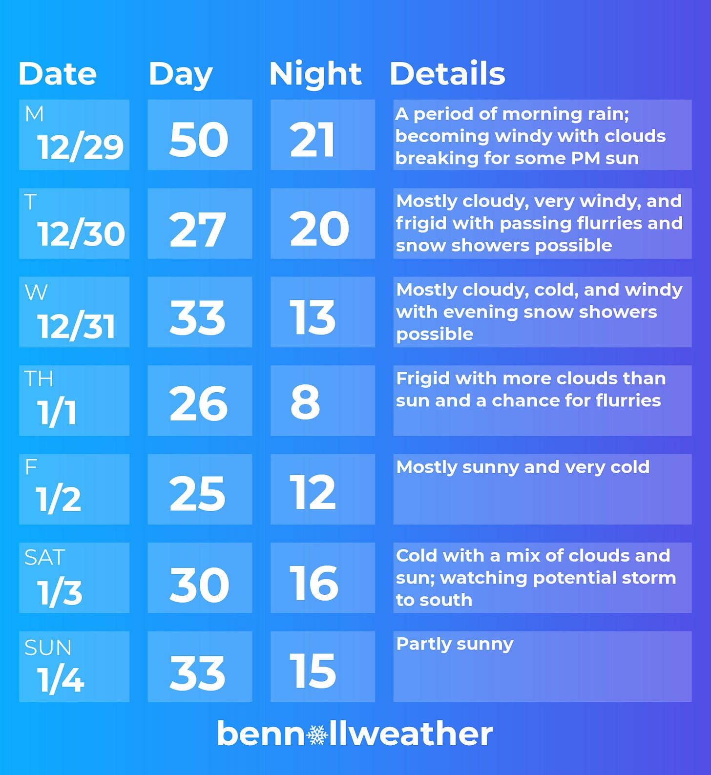 Wednesday: cold and windy… there’s a chance for flurries as the clock strikes 12 ❄️