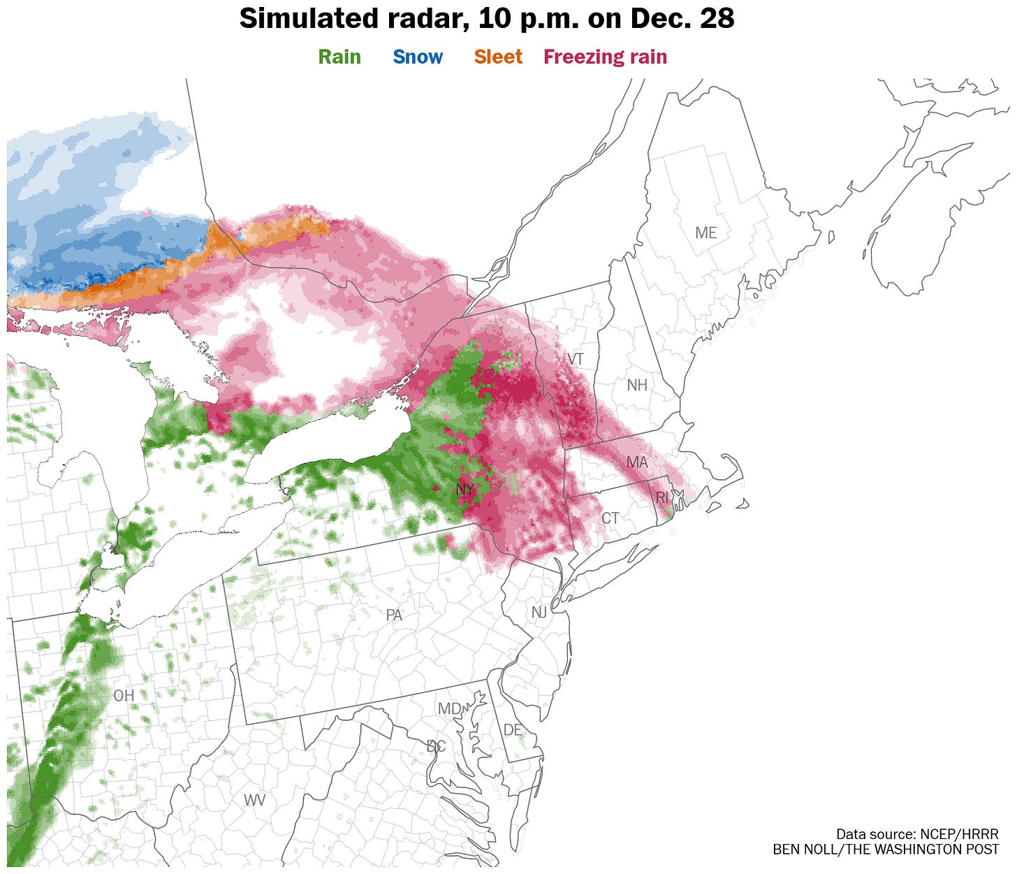 On a more urgent note, the region is also bracing for a period of freezing rain starting between 4 p.m. and 7 p.m. on Sunday evening. Because ground temperatures are well below freezing, a glaze of ice will create dangerous driving and walking conditions into early Monday. It’s best to avoid traveling if you can. Winter weather advisories are in effect from Sunday evening to early Monday morning. Rising temperatures and a period of plain rain on Monday morning will wash away the ice.