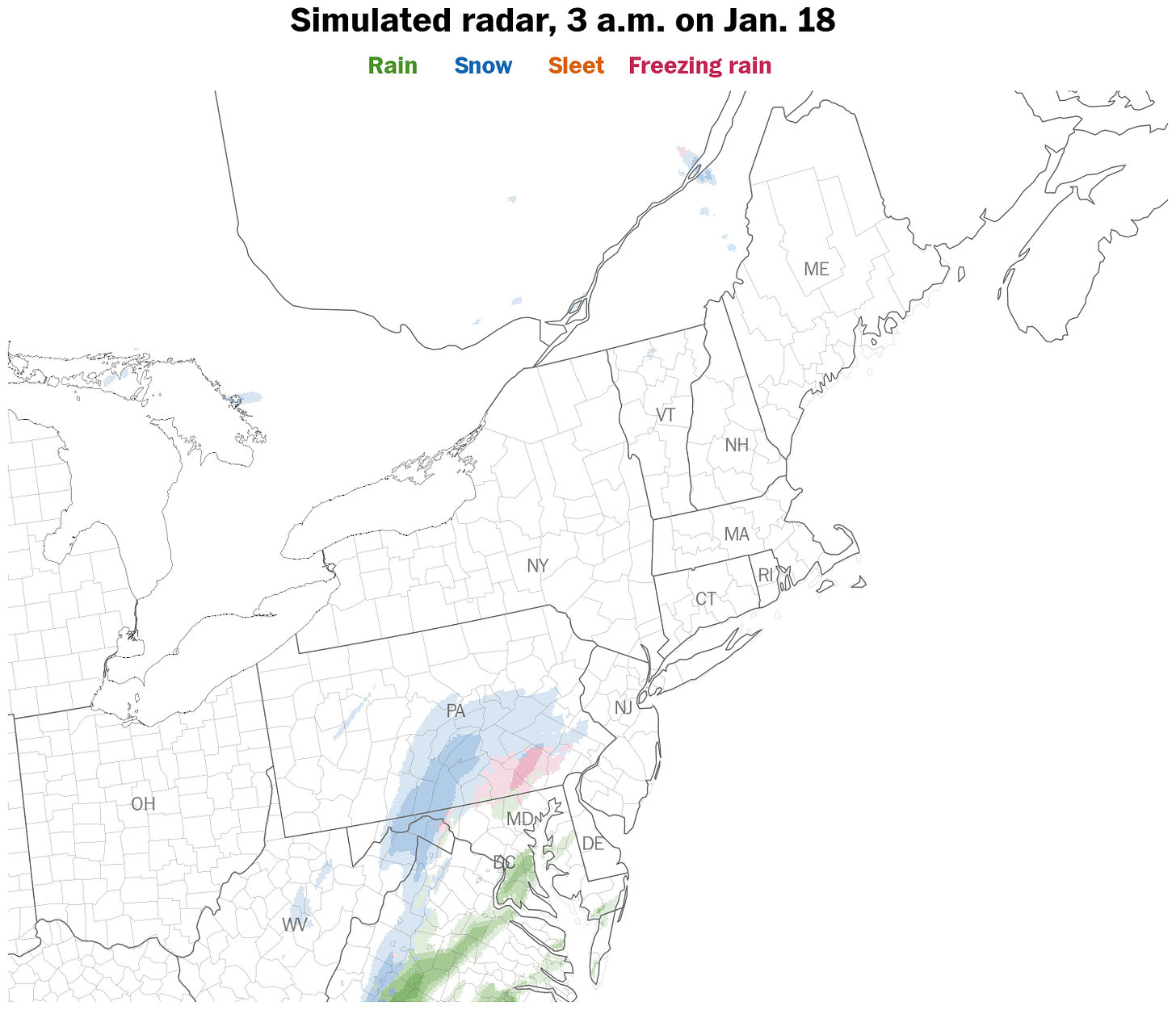 Steady, light-to-moderate snow is expected throughout the event, with intensities dependent on just how far west the storm tracks.
