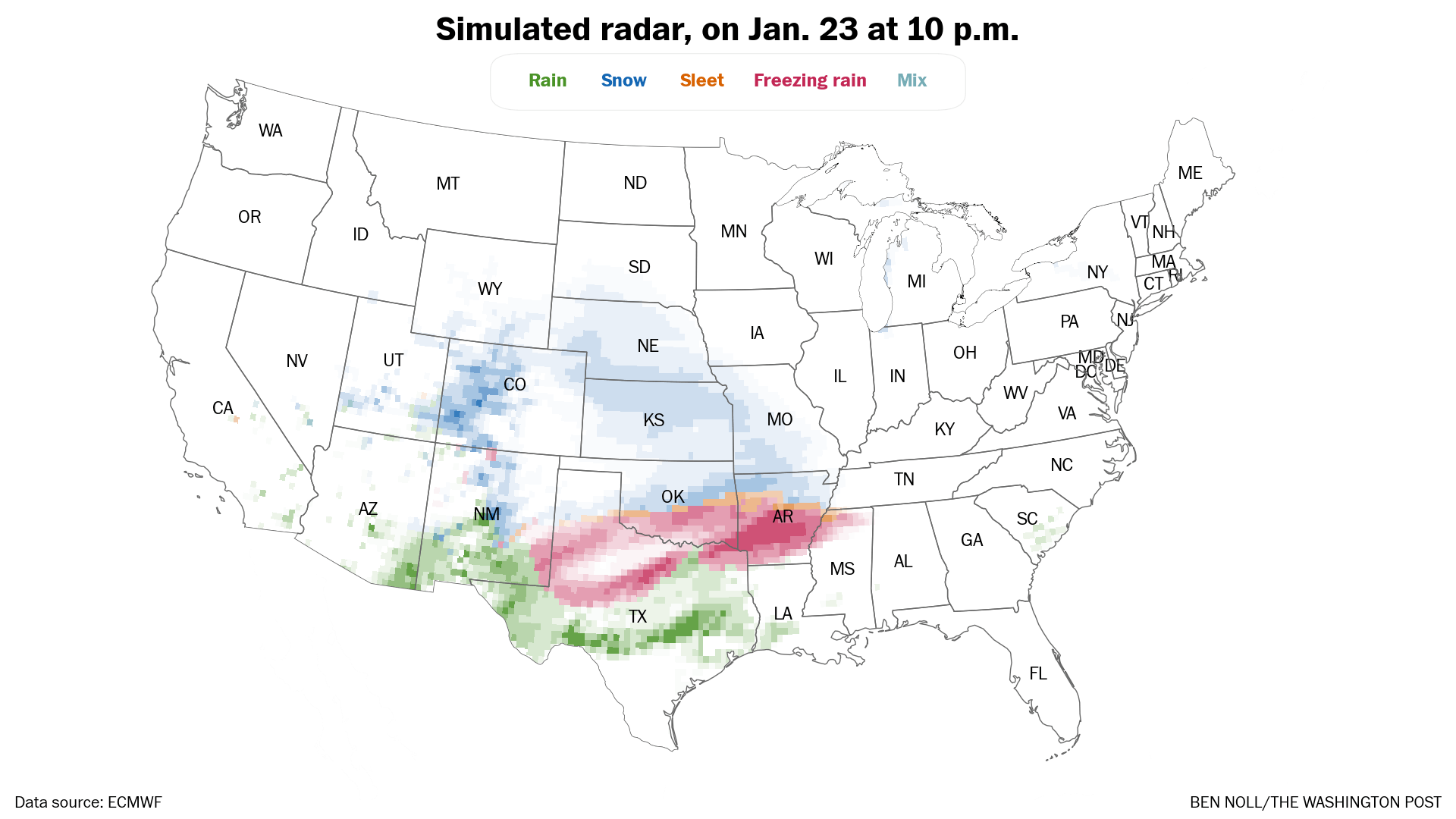 There will be snow, lots of it, for lots of people. But that’s not the most concerning part: it’s the ice. Large and destructive ice accretions look possible in a swath from Texas to North Carolina this weekend.