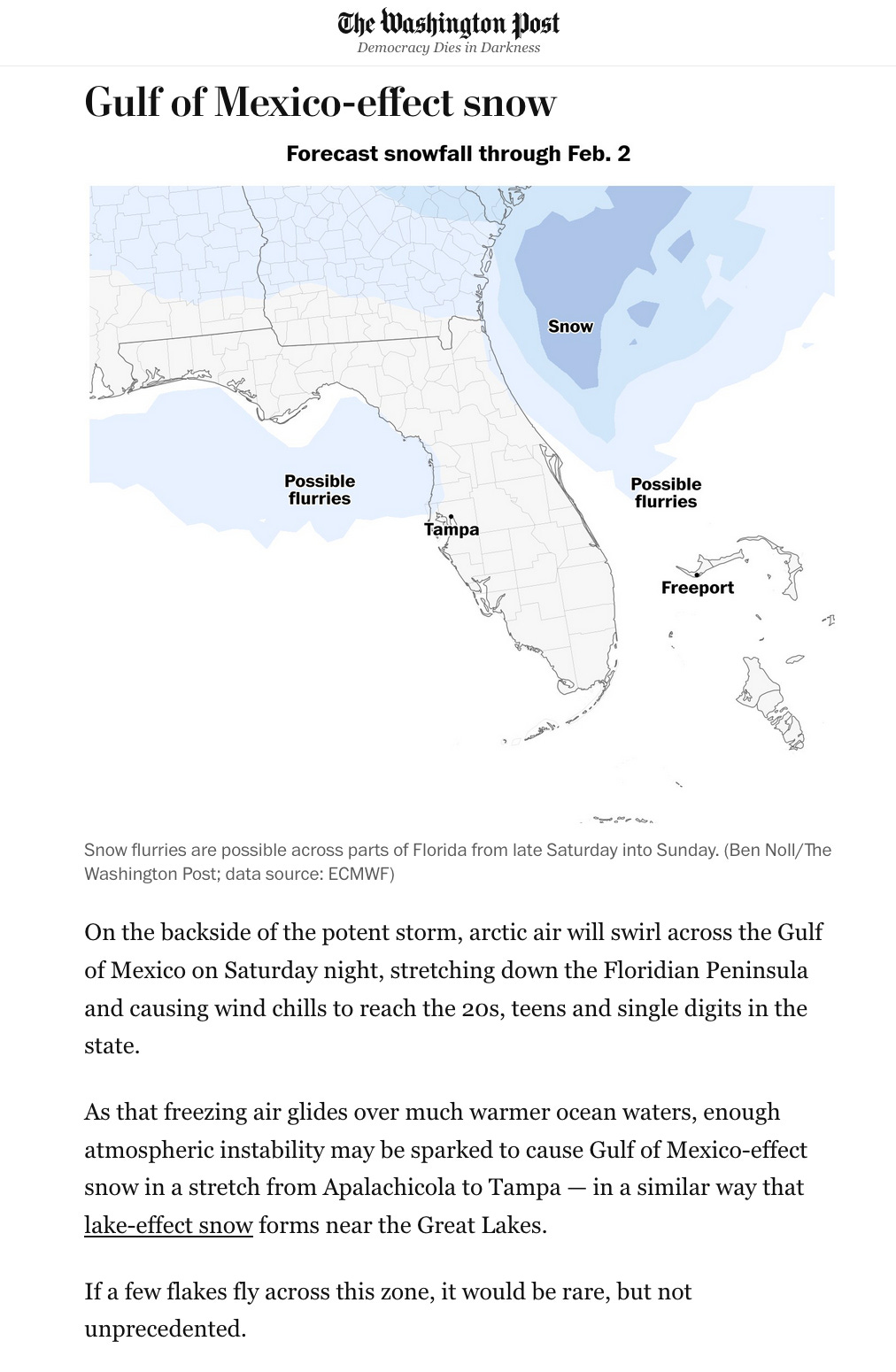 The scenario tracking across updates is helpful for understanding model confidence vs uncertainty - following along made it clear why 'miss to the east' was always a real possibility even when the headlines focused on the potential hit. The Florida snow angle is interesting too - coastal nor'easters bending south enough to affect the Gulf states happens maybe once a decade? The framing around 'congrats to those hoping for no snow' acknowledges the split in how ppl view these forecasts, which is more honest than treating all storms as purely threats.