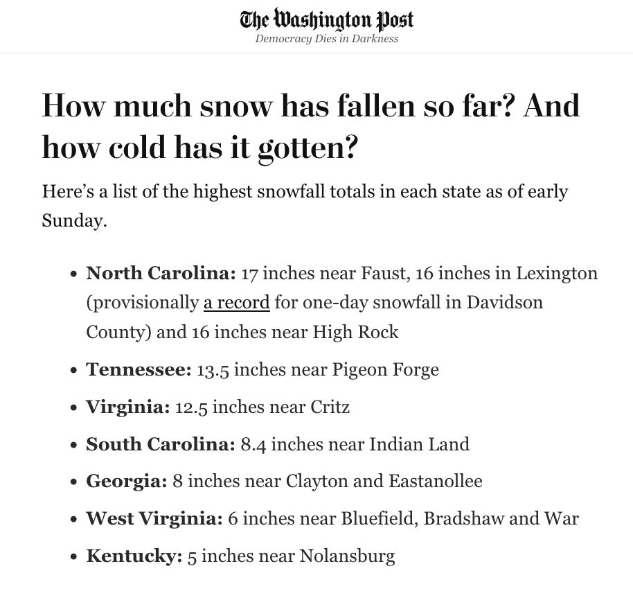 There was no snow in the Hudson Valley this weekend. You’d have to go to the Carolinas — or Florida — for that.