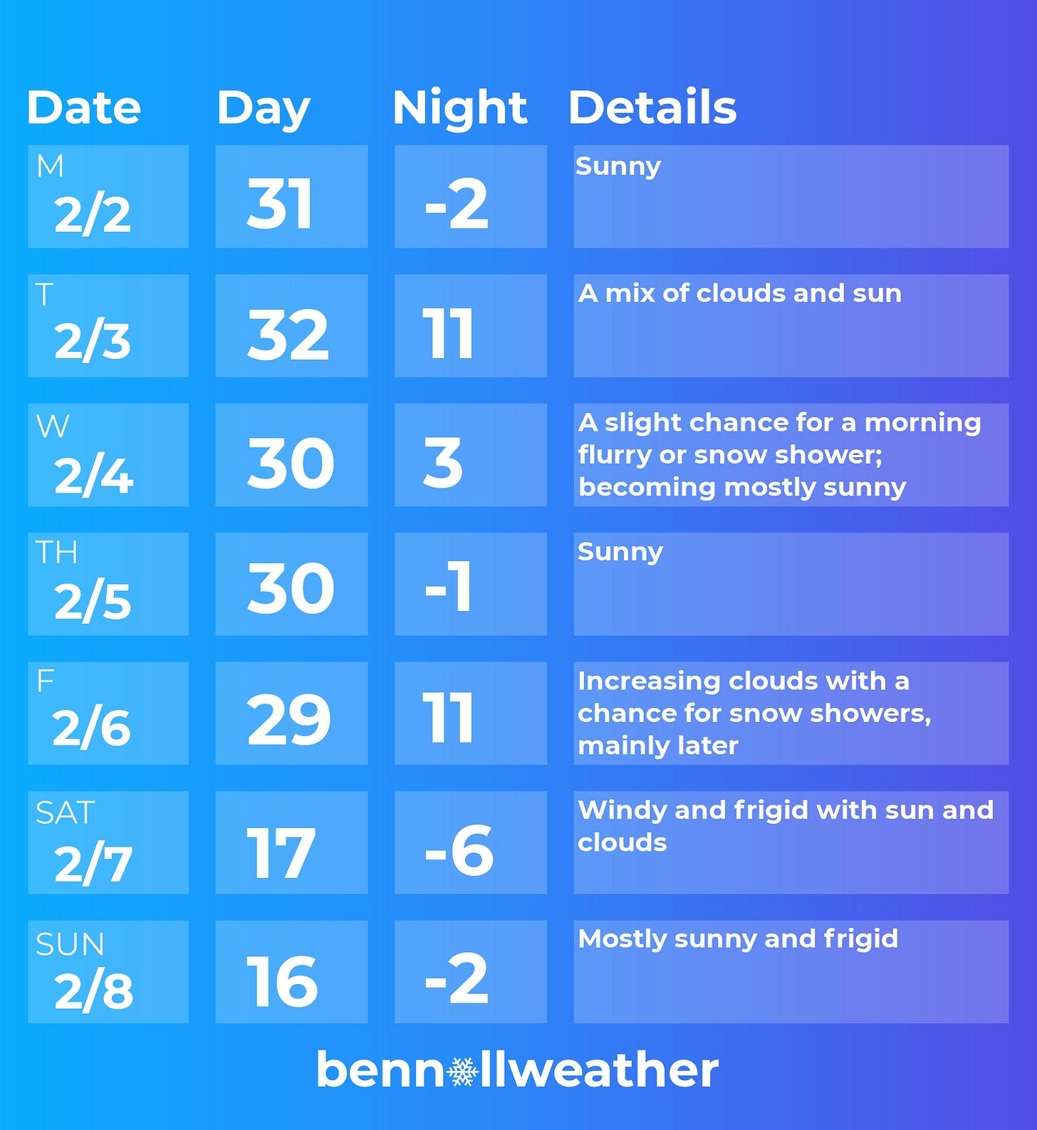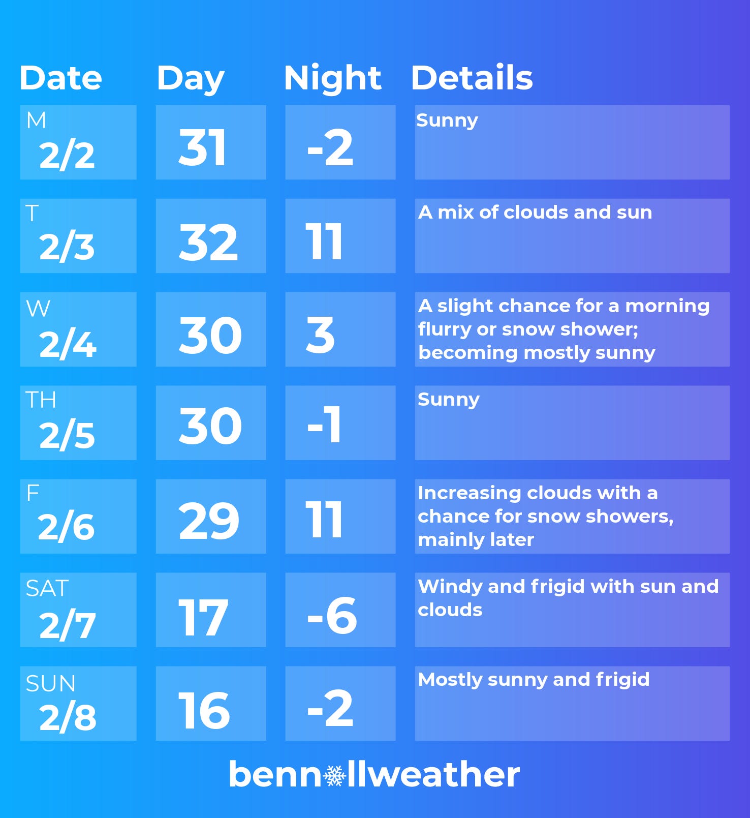 Saturday-Sunday: frigid 🥶