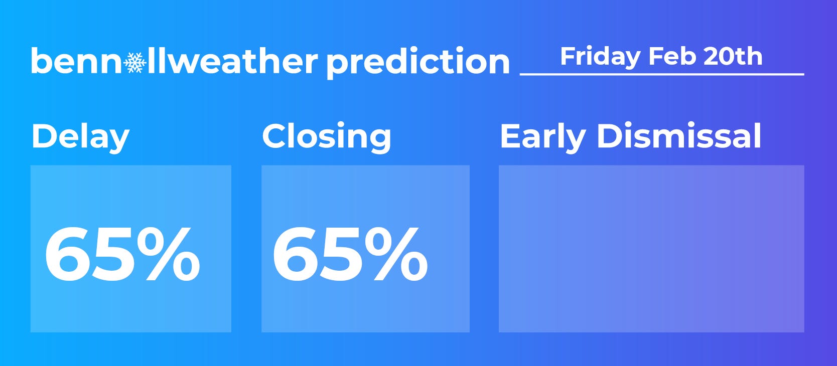 Despite the borderline nature of this event, the combination of snow, ice, and disruptive timing means that school closings are likely — especially north of I-84 where the wintry mix will linger longest. Schools may initially opt for delays to allow more time to determine whether a snow/ice day is the best call.