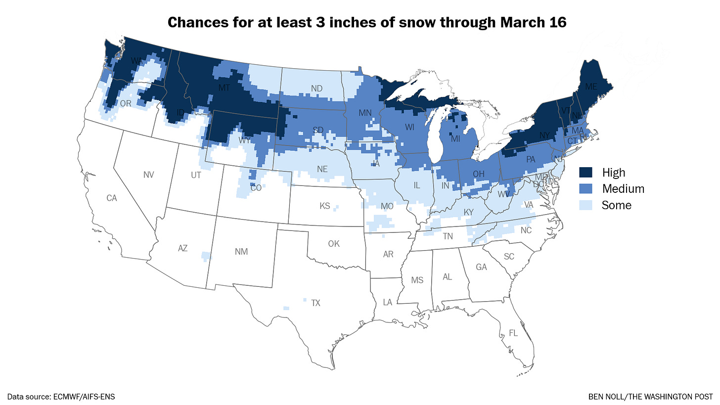 The week of March 16 looks to turn considerably colder, a reminder that winter isn’t technically over.