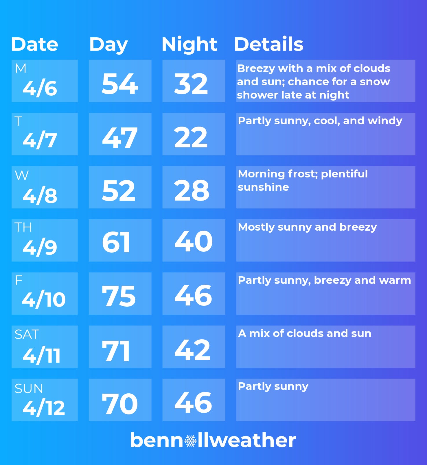 The week ahead will bring some serious temperature swings and more wind, but at least there will be sun most days.